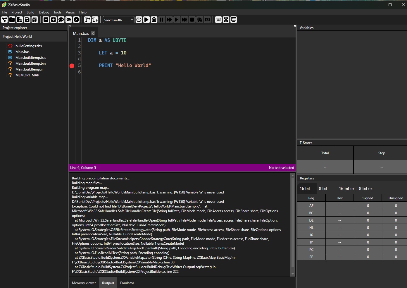 I had an issue with my Boriel that prevented me from using the debugger. This has been fixed with help from the forum and me installing the latest version of the Boriel ZXBasicStudio.